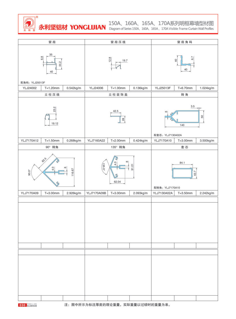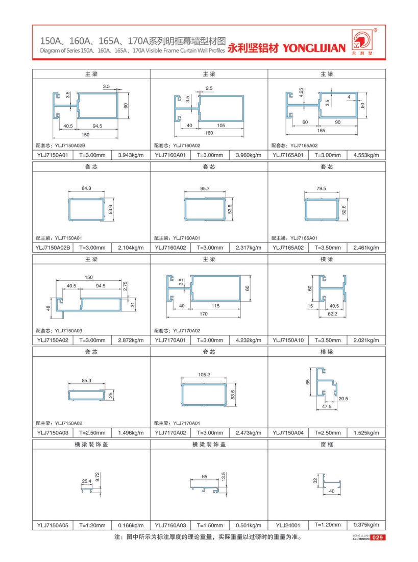 150A、160A、165A、170A系列明框幕墻