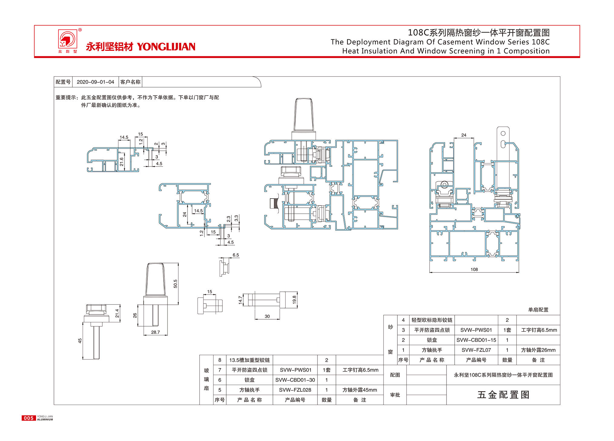 108C series heat insulation window screen integrated window (inner and outer flat frame, hidden drainage)