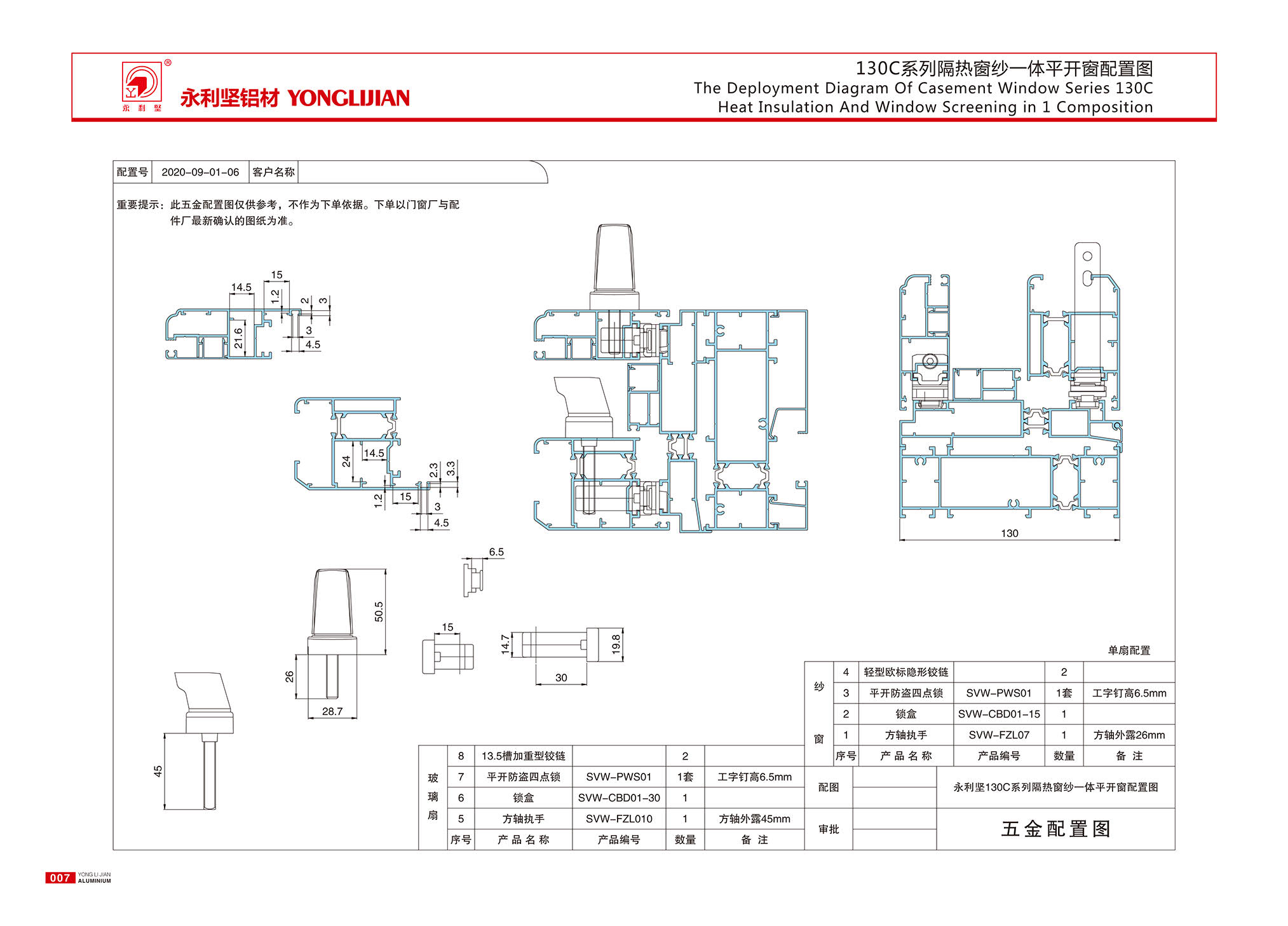130C系列隔熱窗紗一體窗(內(nèi)外平框、隱排水)