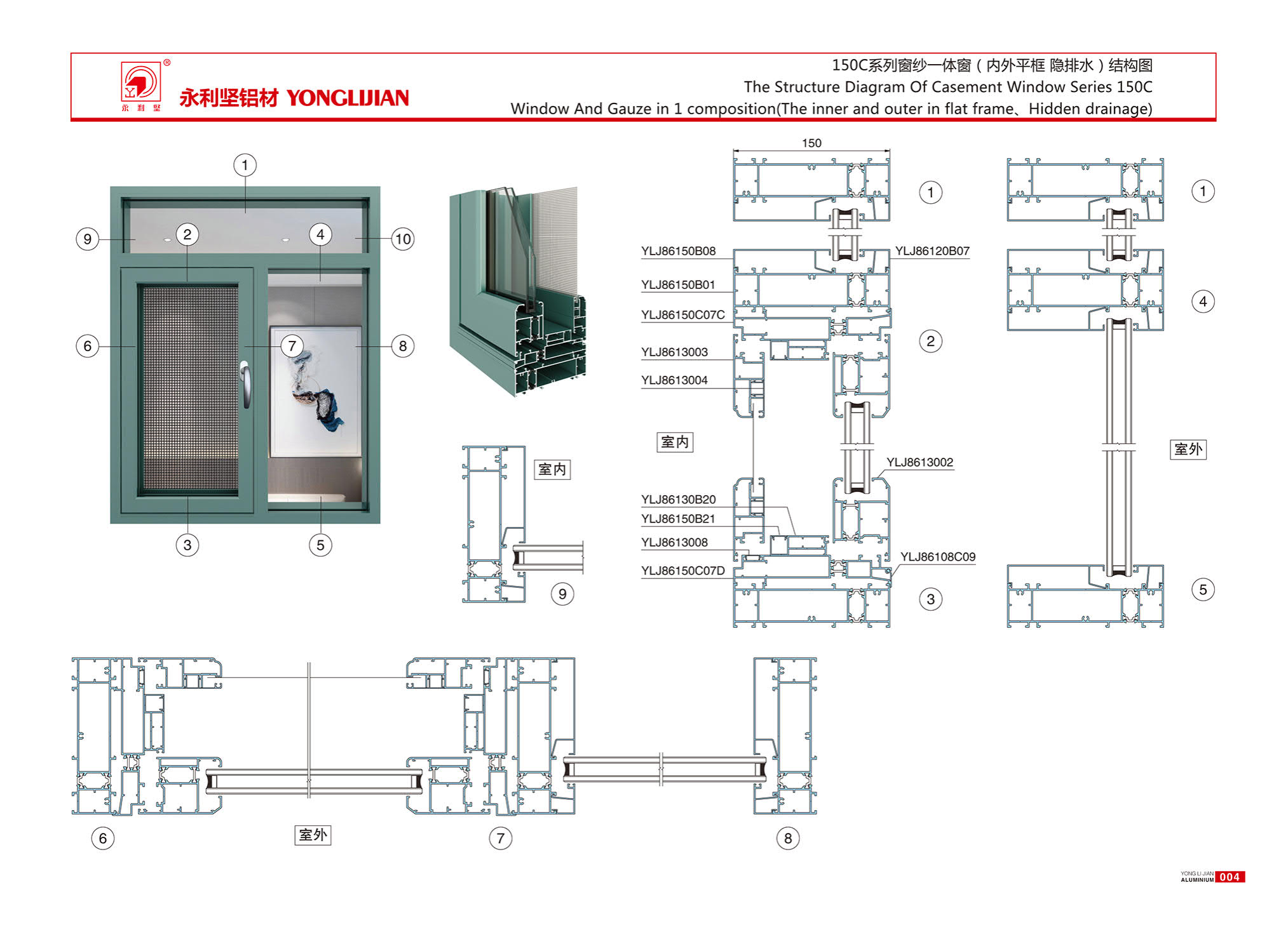 150C系列隔熱窗紗一體窗(內(nèi)外平框、隱排水)