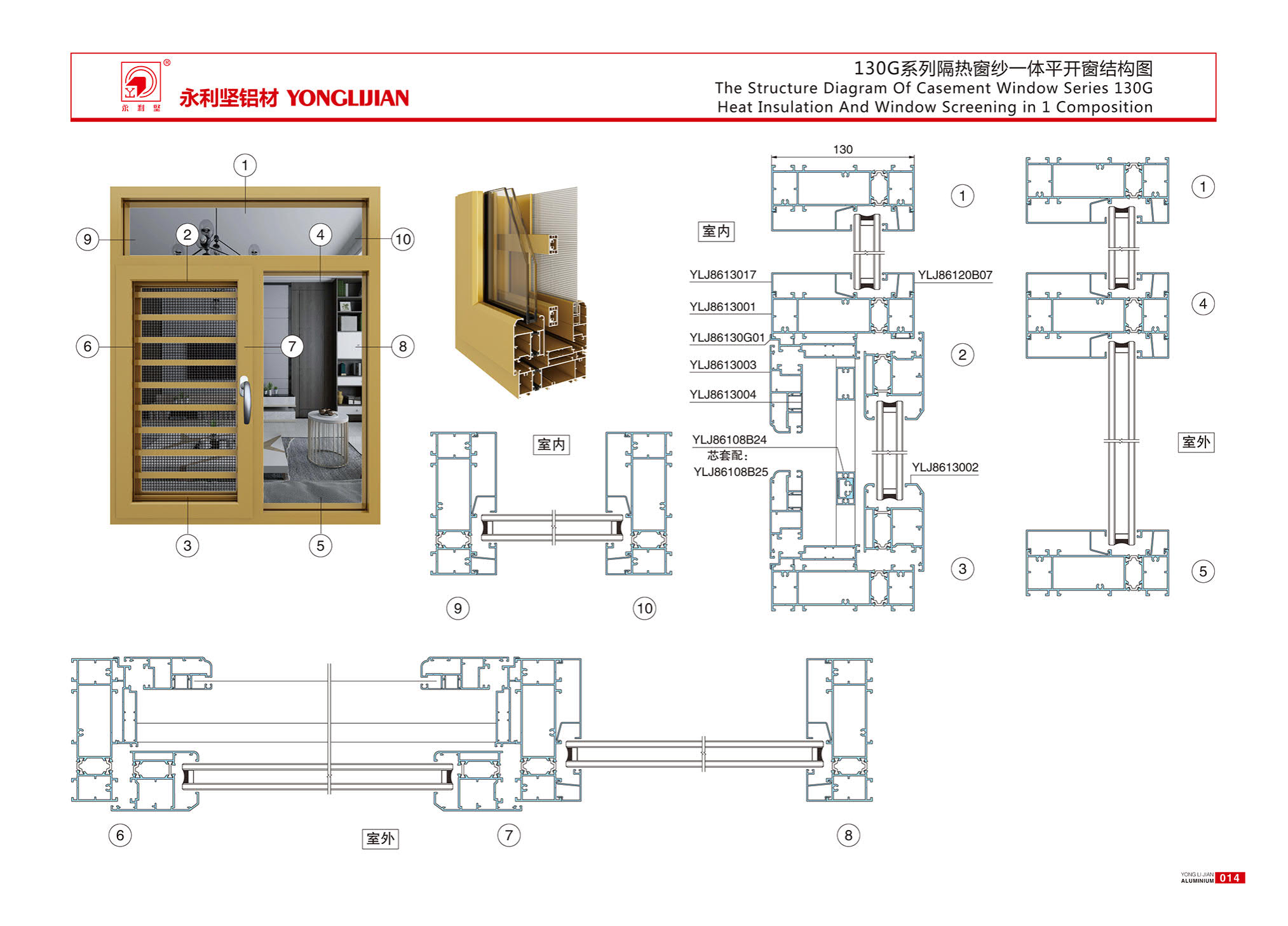 130 series heat insulation screen integrated casement window