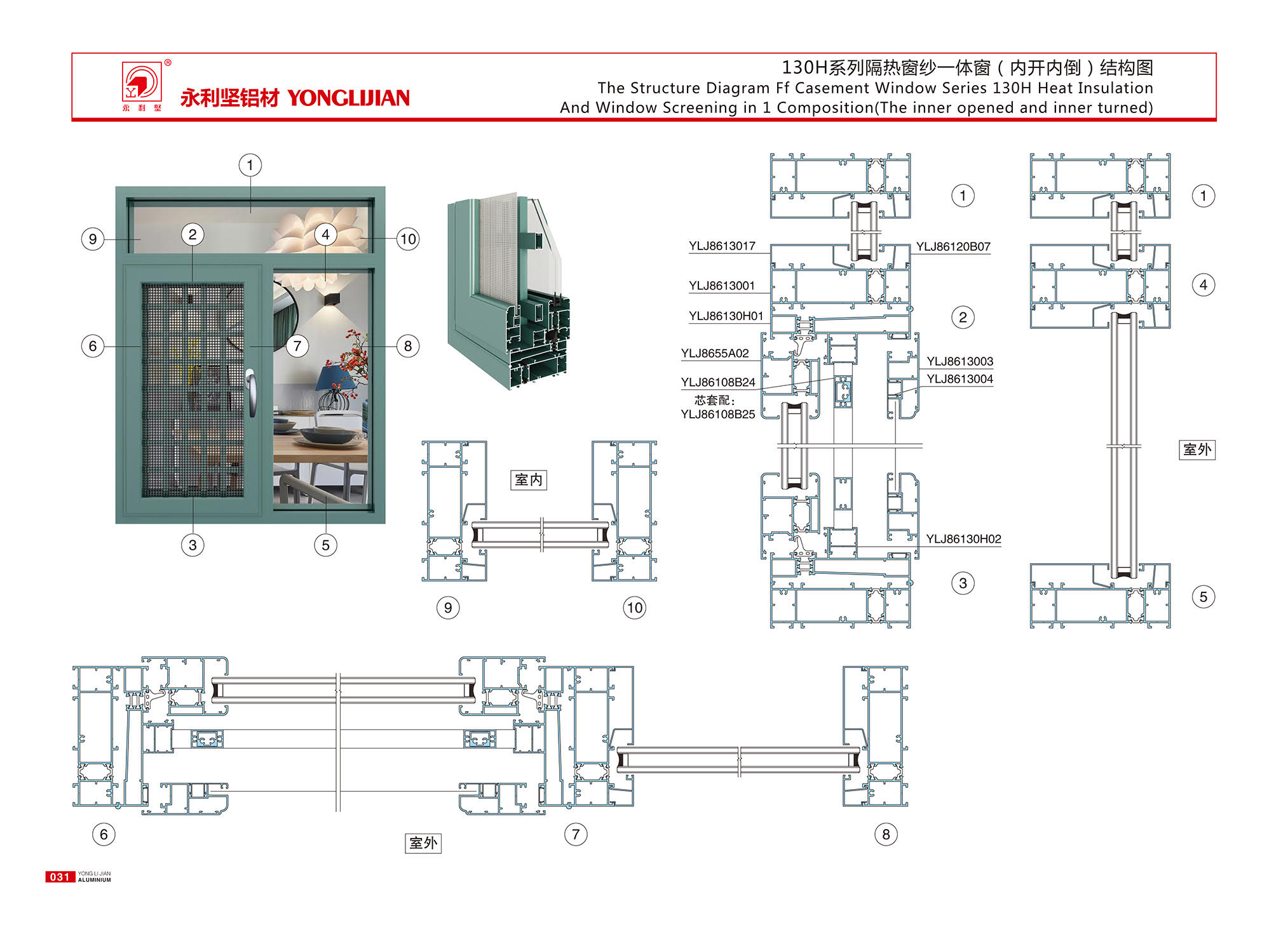130H系列隔熱窗紗一體窗(內(nèi)開內(nèi)倒)