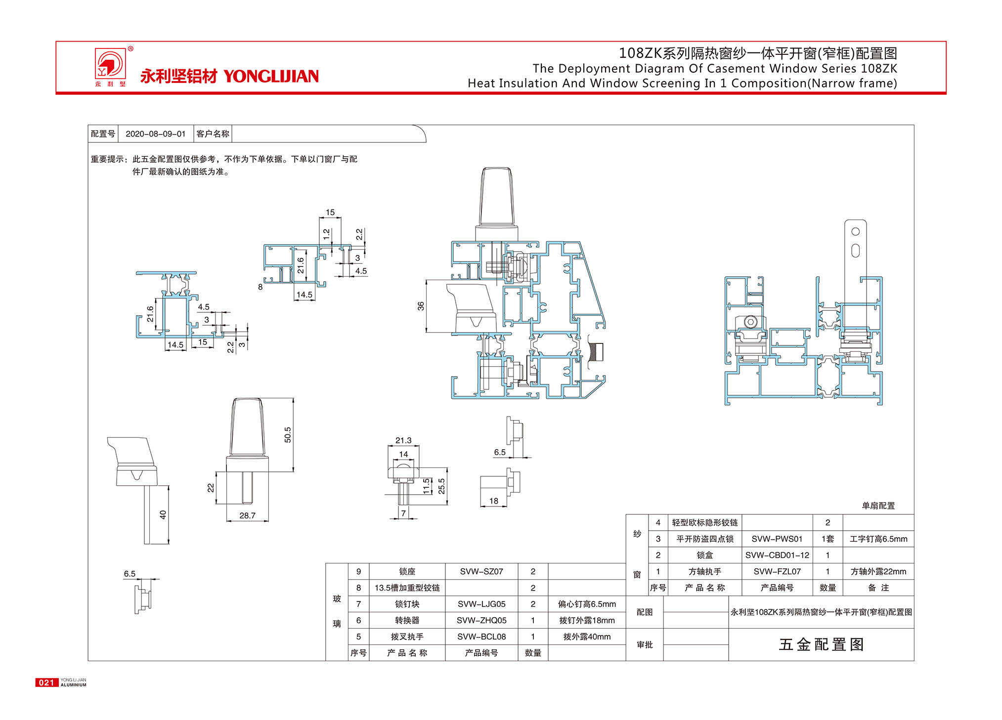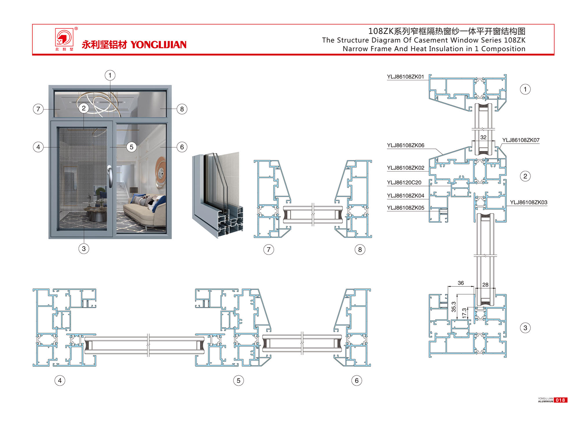 108ZK series narrow frame heat insulation window screen integrated casement window