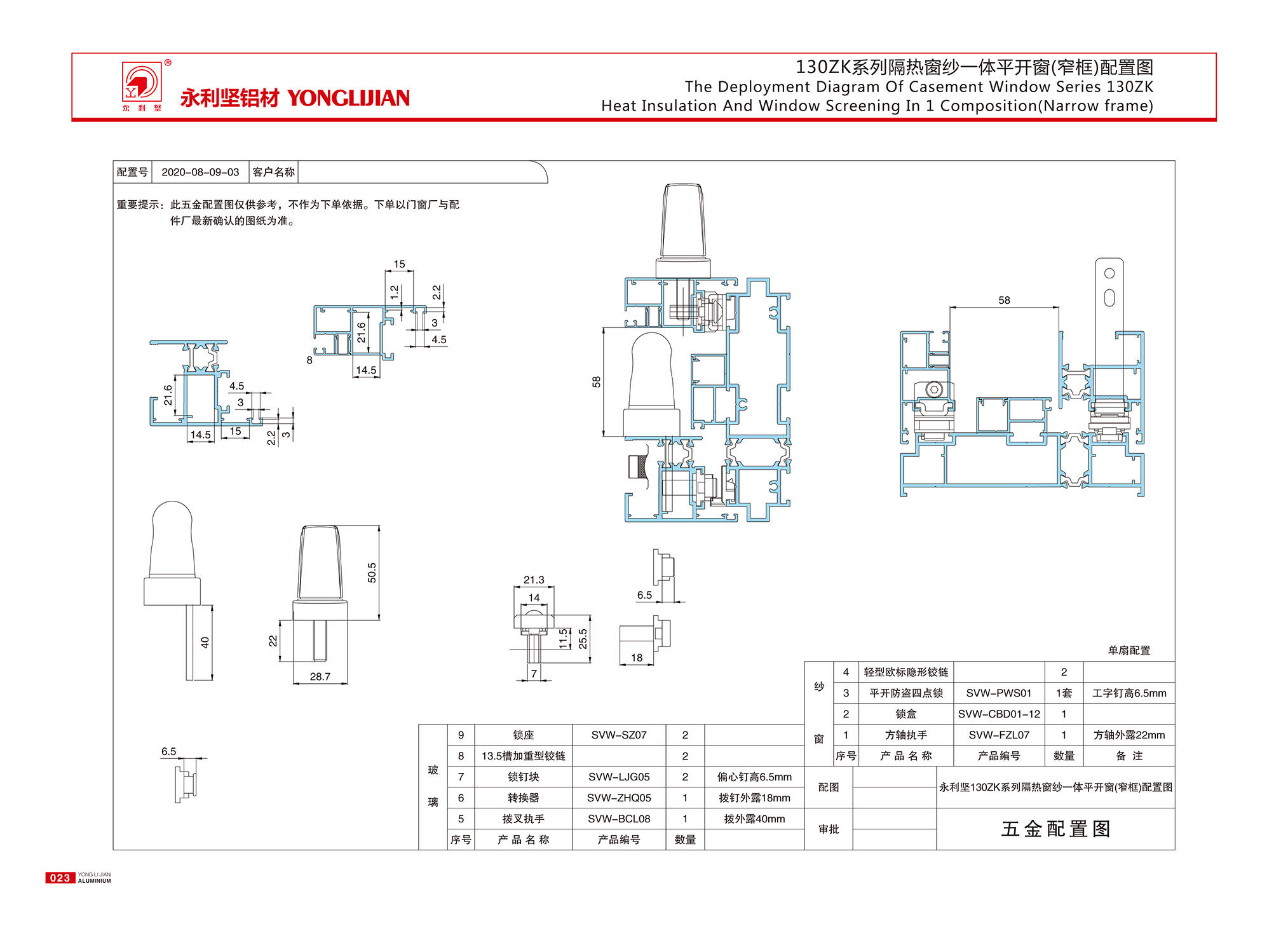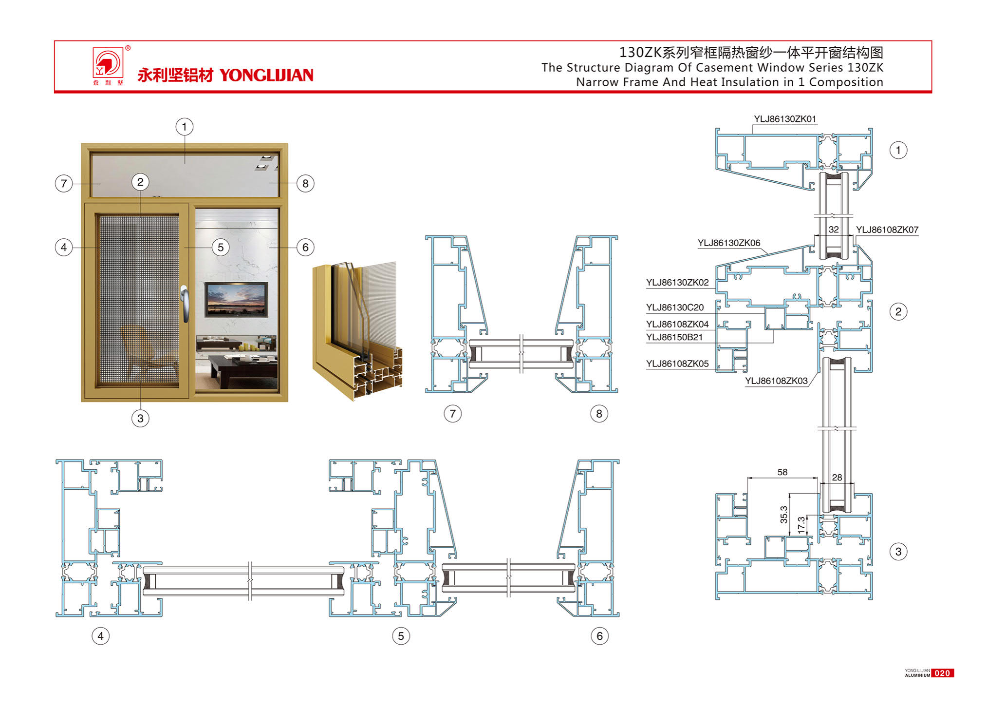 130ZK series narrow frame heat insulation window screen integrated casement window