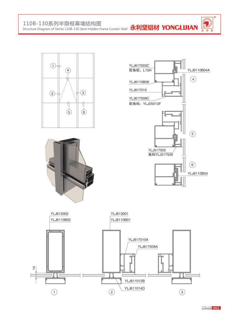 110B-130 series semi hidden frame curtain wall