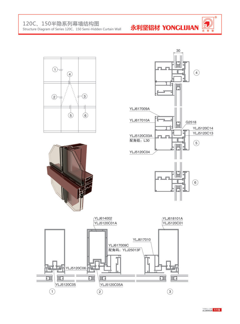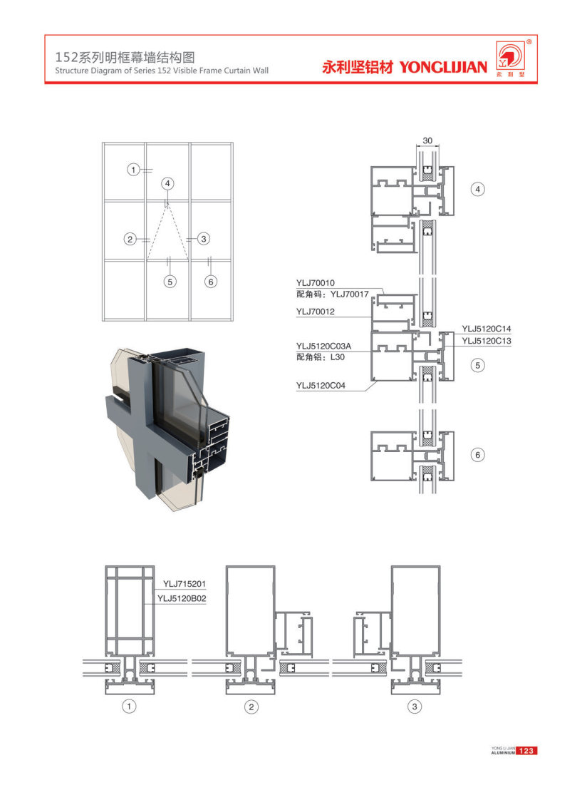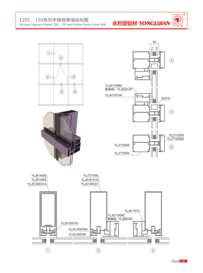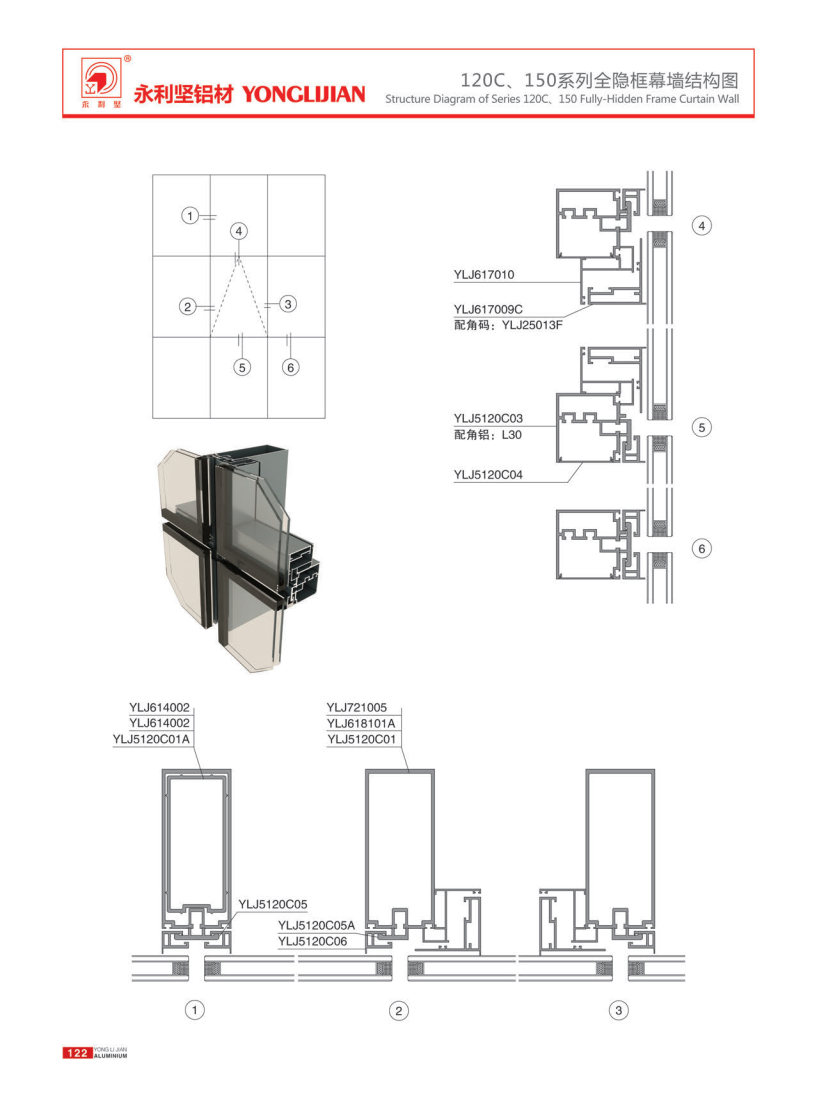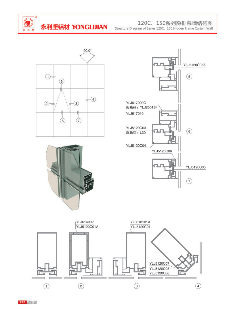 120C, 150, 152 series open frame, hidden frame, semi hidden frame curtain wall