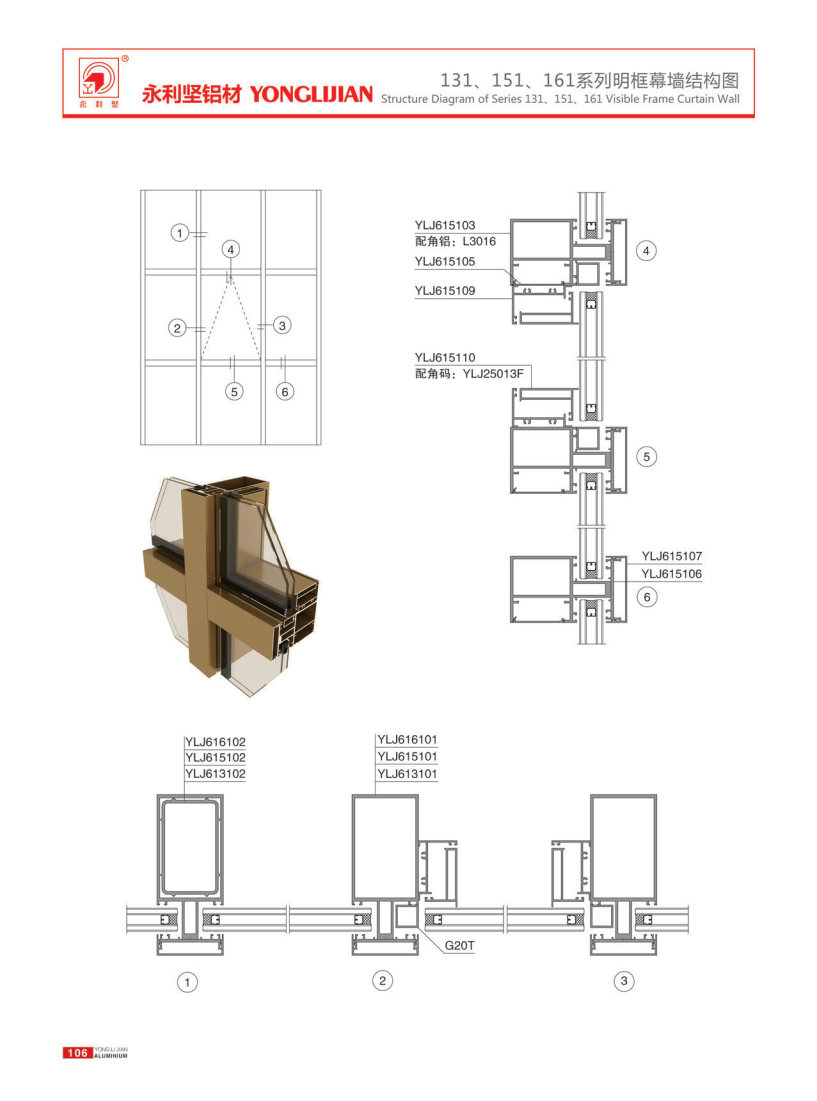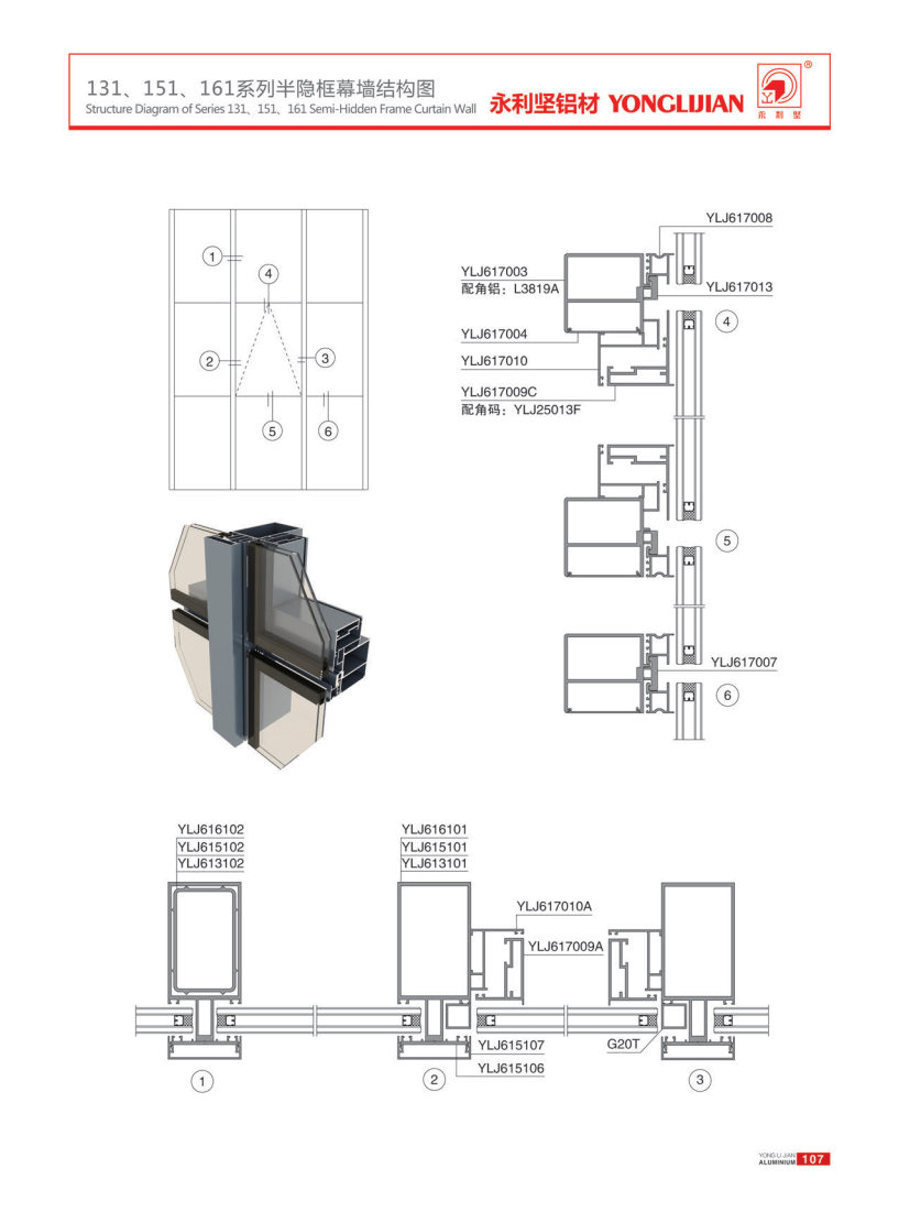 131, 151, 161 series semi hidden frame and open frame curtain wall