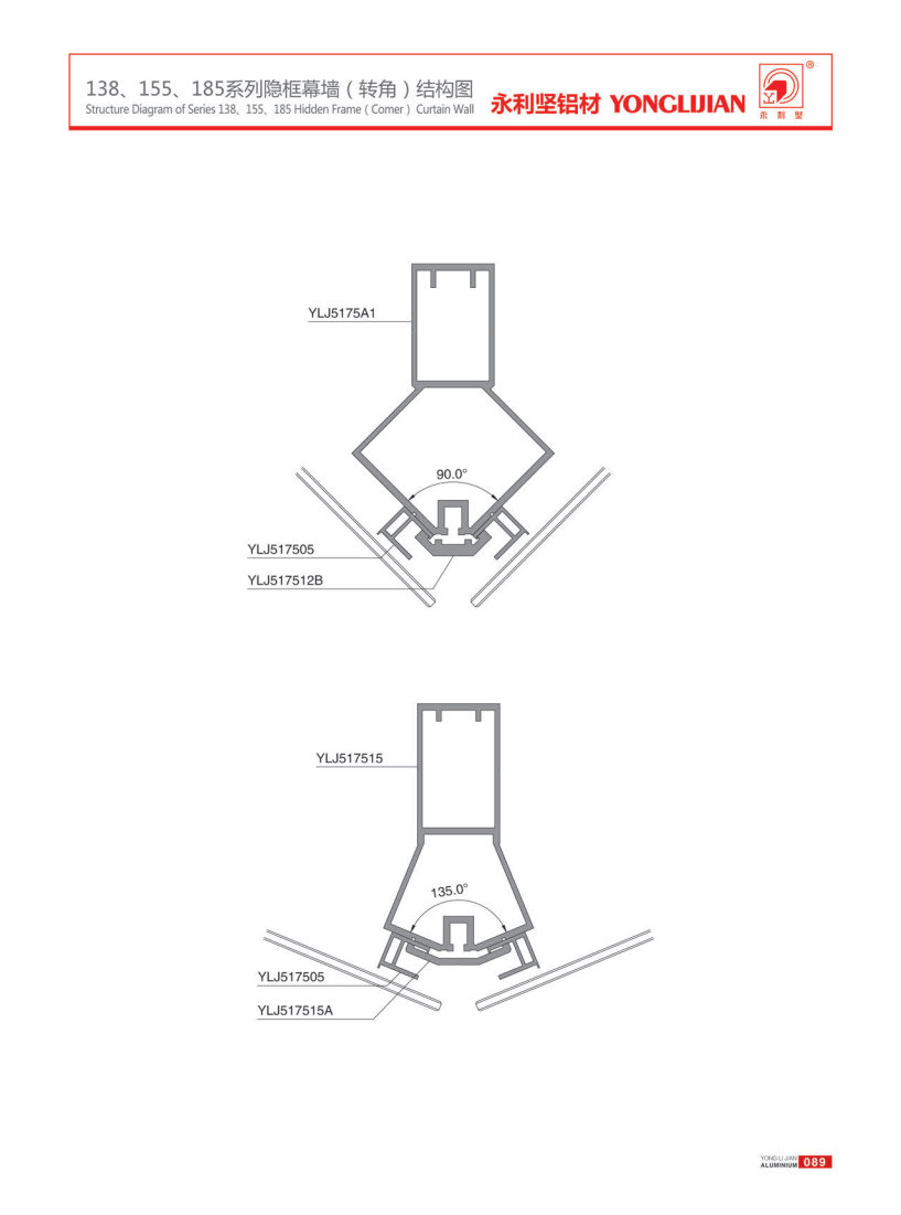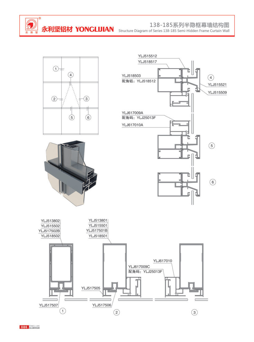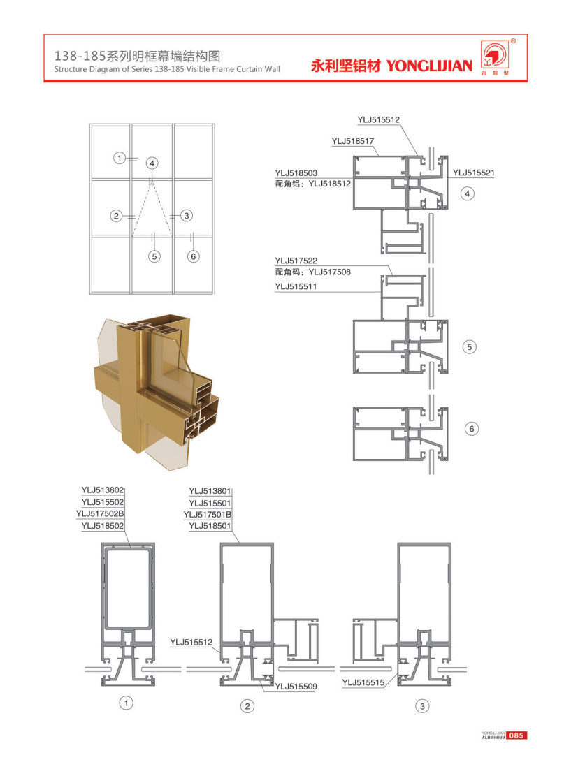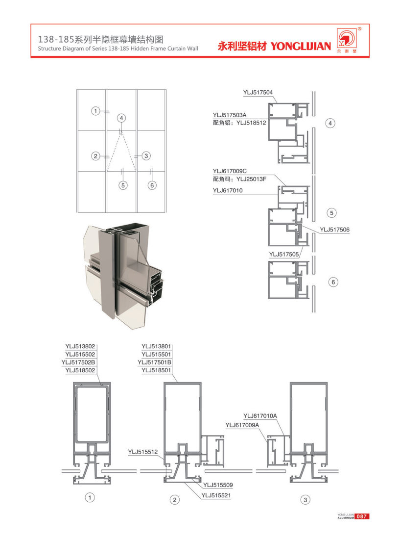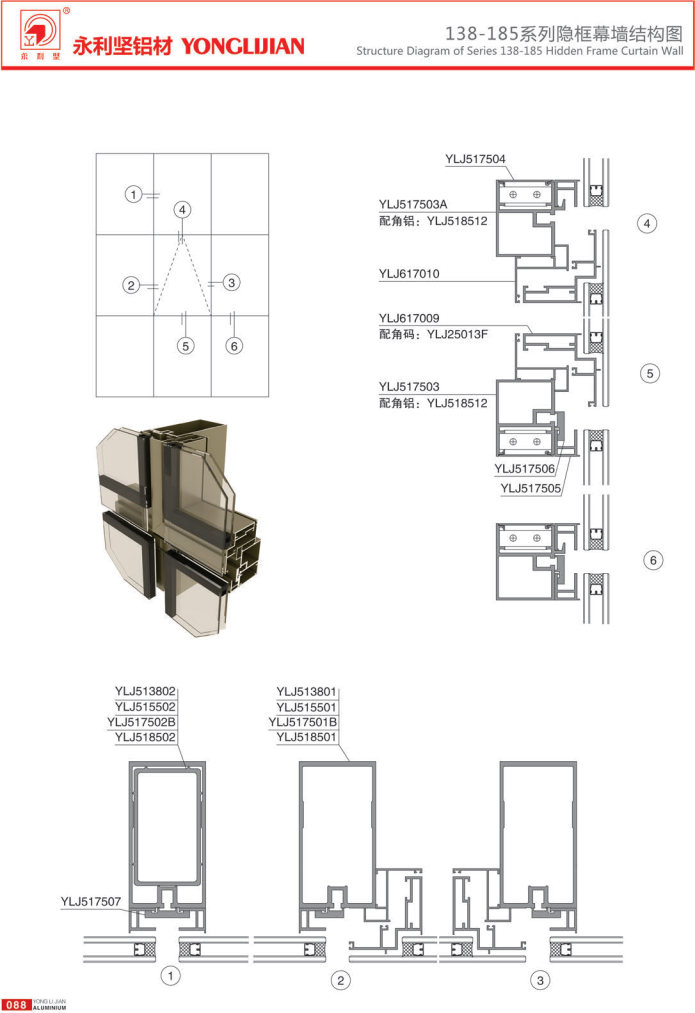 138-185 series hidden frame, semi hidden frame and open frame curtain wall