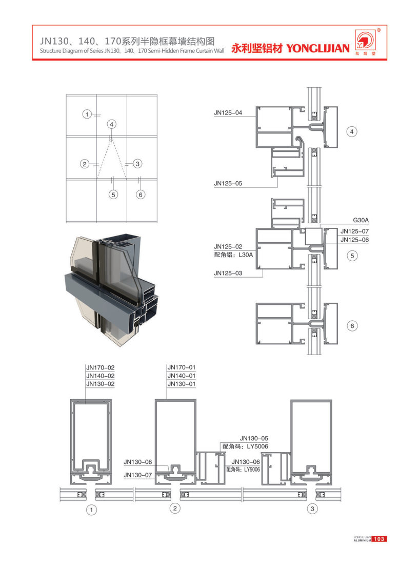 JN130、140、170系列隱框、半隱框幕墻