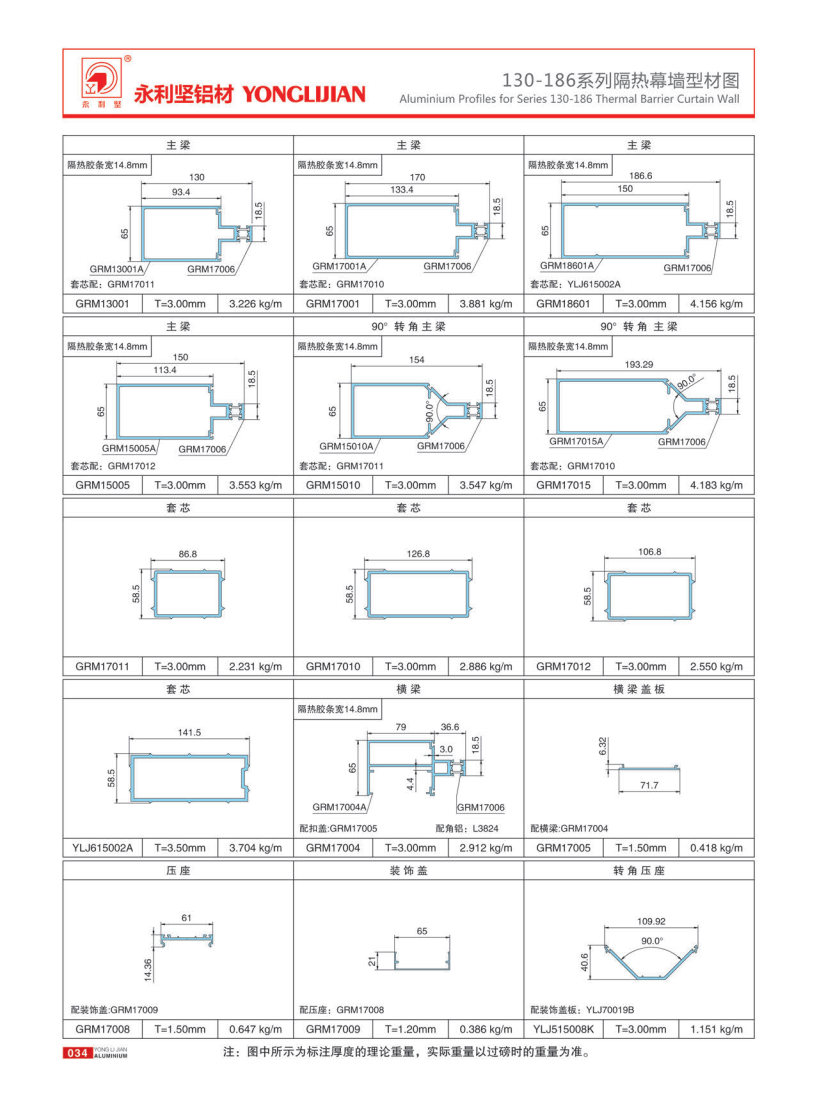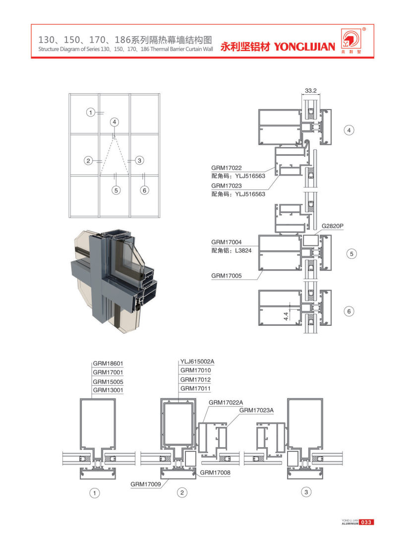 130, 150, 170, 186 series open frame thermal insulation curtain wall